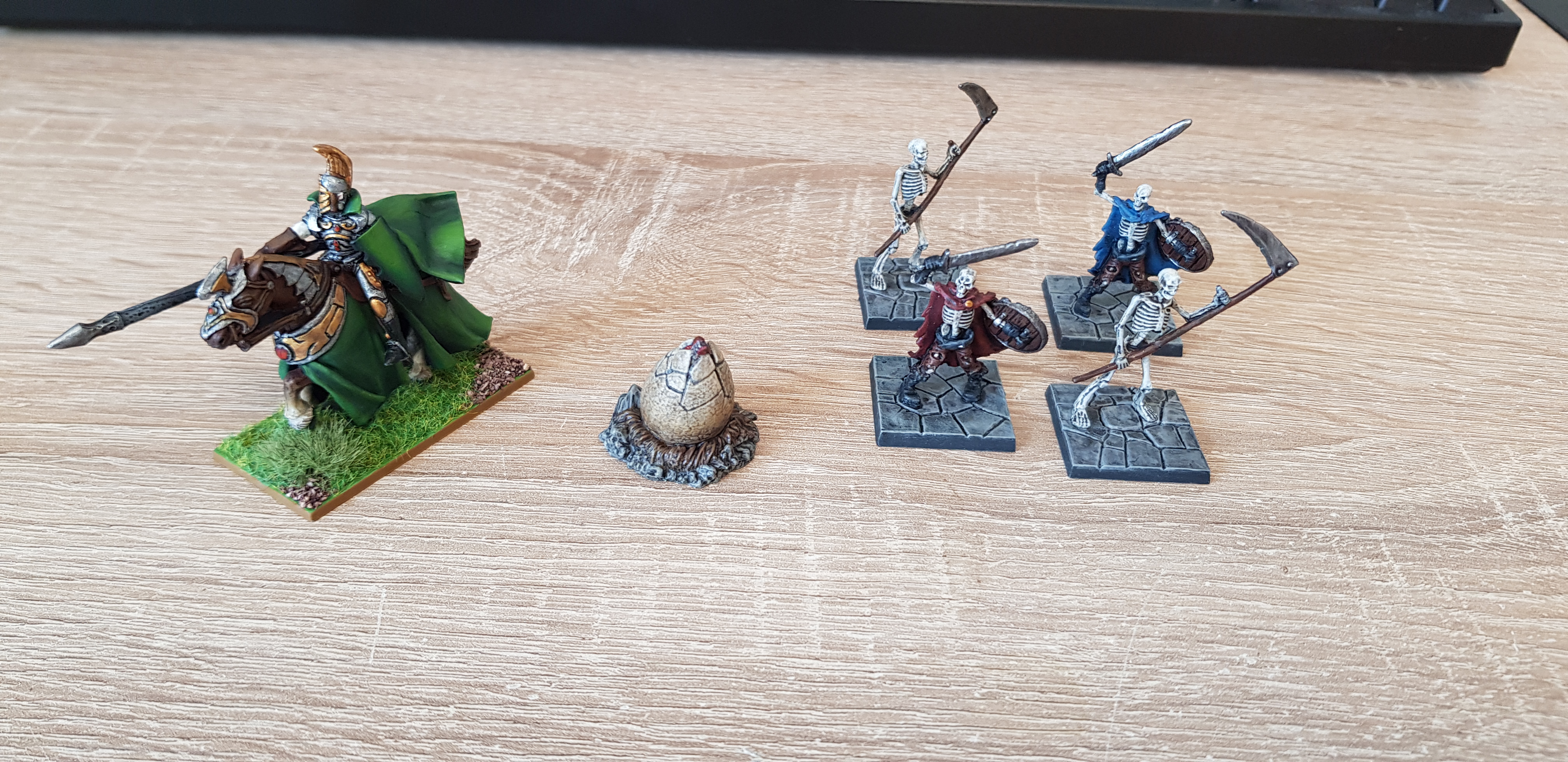 Oh gee what happened … some “Quick and Dirty painted” Dungeon Saga Skellies have taken over my painting table, as I could paint them quickly, with the little time I had lately … but I also managed to finish the Dragon Egg Objective and finally did get my first Stormwind Cavalry Model done