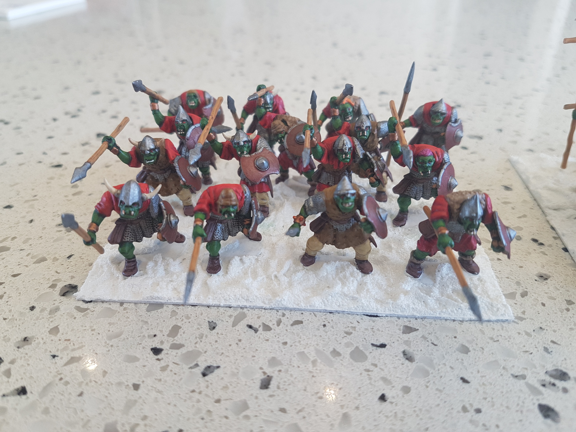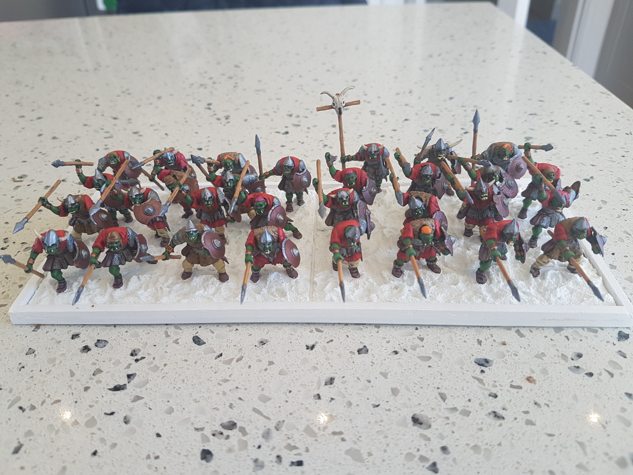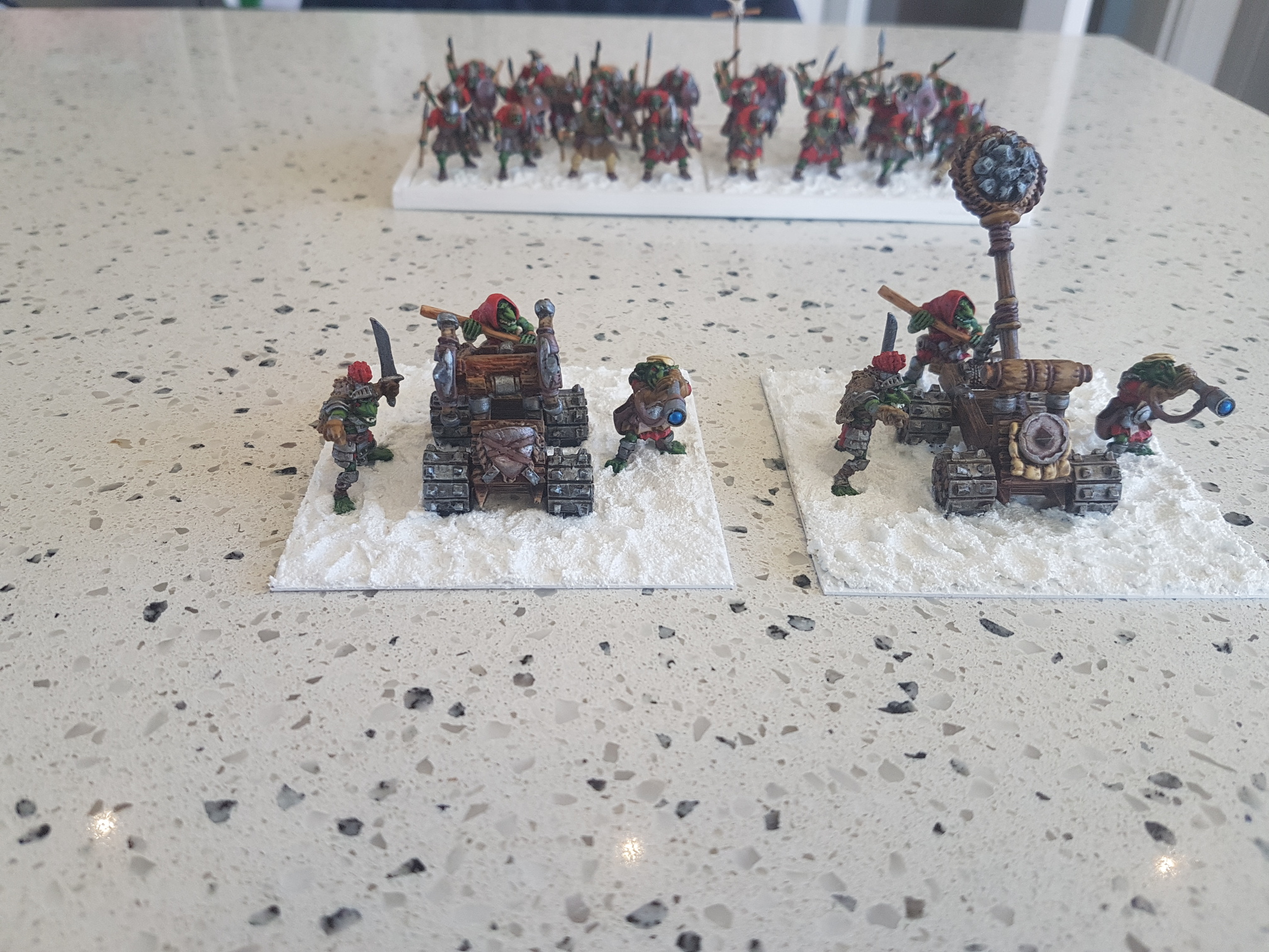 The goblins continue. Spear regiment three and four completed and two more war machines sorted.