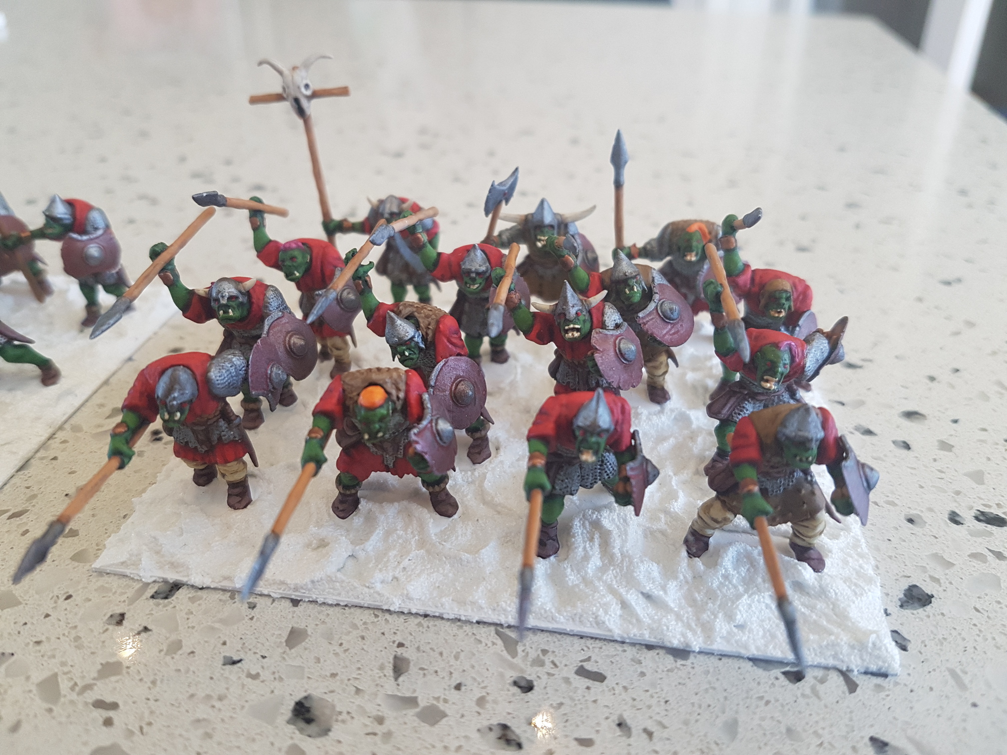 Still have banners and bases to finish on the goblins. Filled, sanded and painted the extra horde and regiment trays last night. Need to tart up the snow bases with extras but not sure what to do yet.