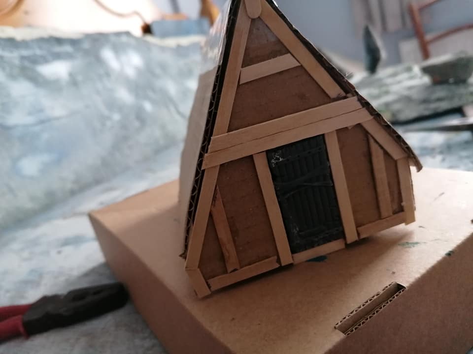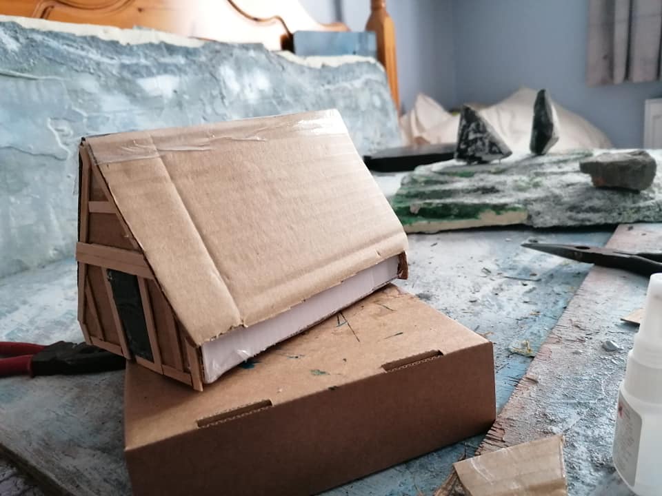 After a couple of busy days creating my punk version of Hrimm the Legend/Roxzstar, i’ll be going back to building more sprue bitz stone walls,( as i used the last two i made on the base of Hrimm, for him to trample into and obliterate, ) and finishing off my two bits of forests. Then maybe sculpt some icy scultures of impassible terrain peices from insulation foam scraps… maybe do a bit of hutwork too