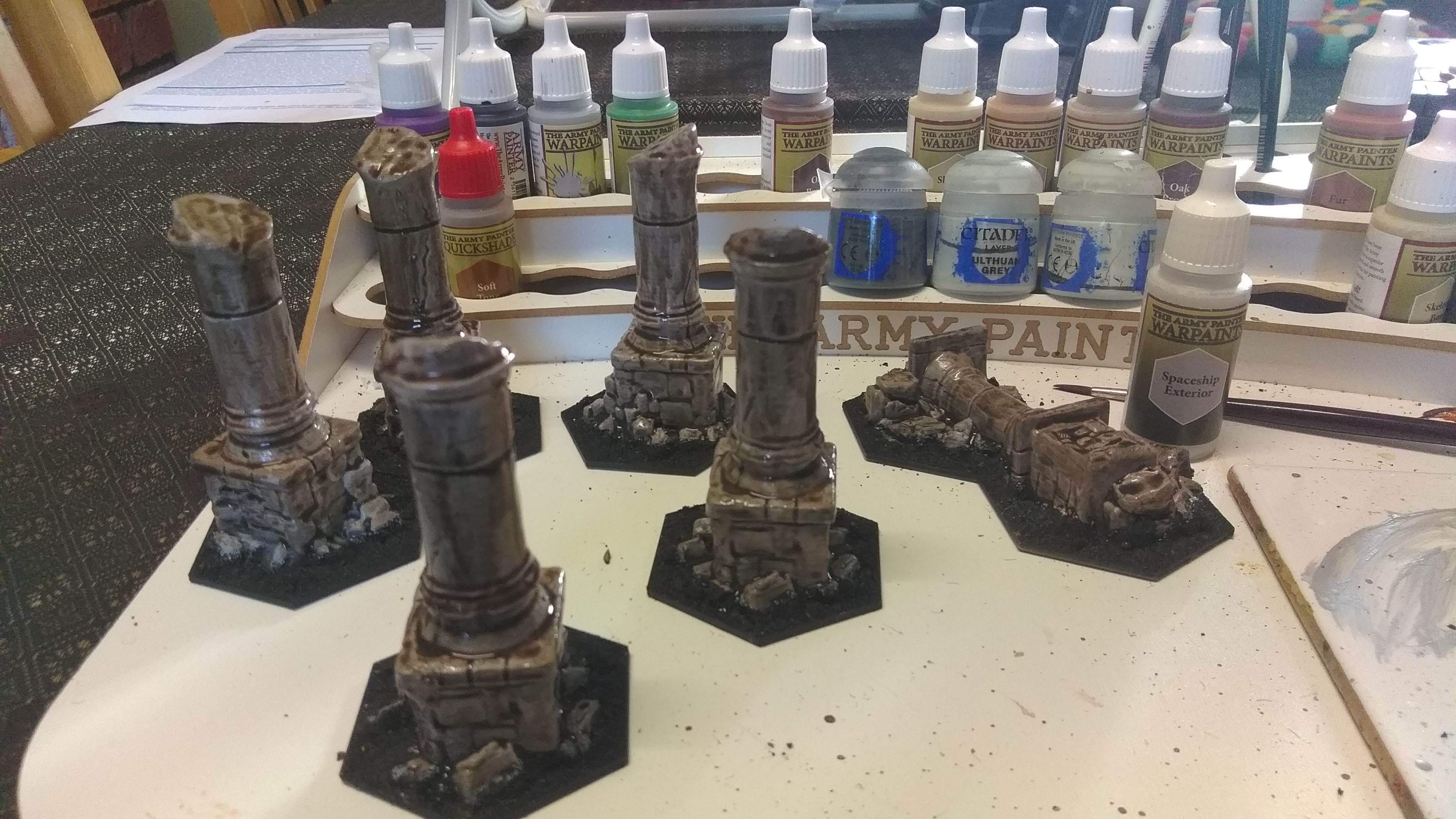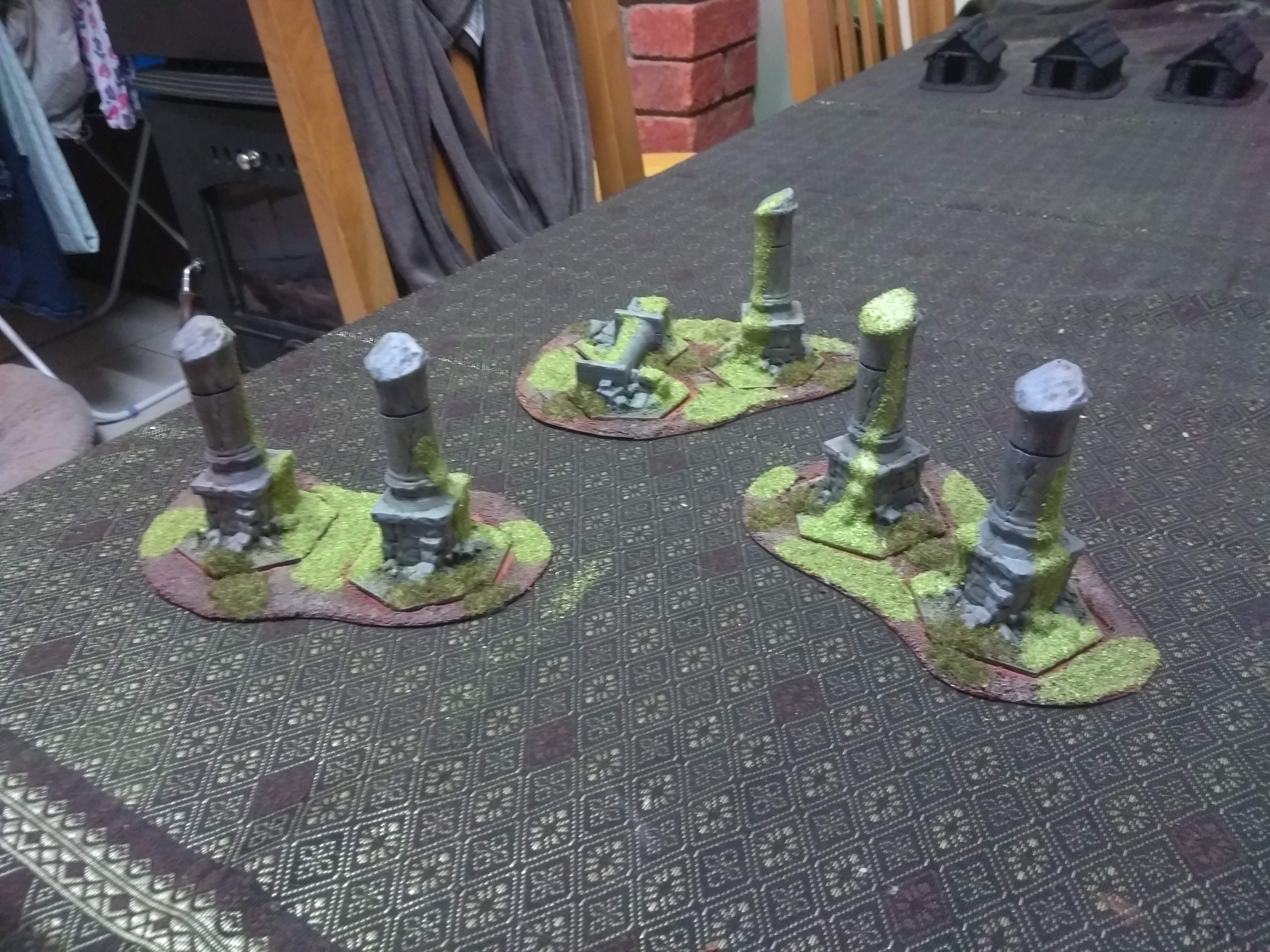 Working on the the last of my ruins. Then it is just my Saxon houses to paint, if I do 5 pieces of terrain for a table I have enough to do 4 tables. This has been a very enjoyable break from painting my Mongolians, and painted terrain really helps increase the visual appeal to a game.