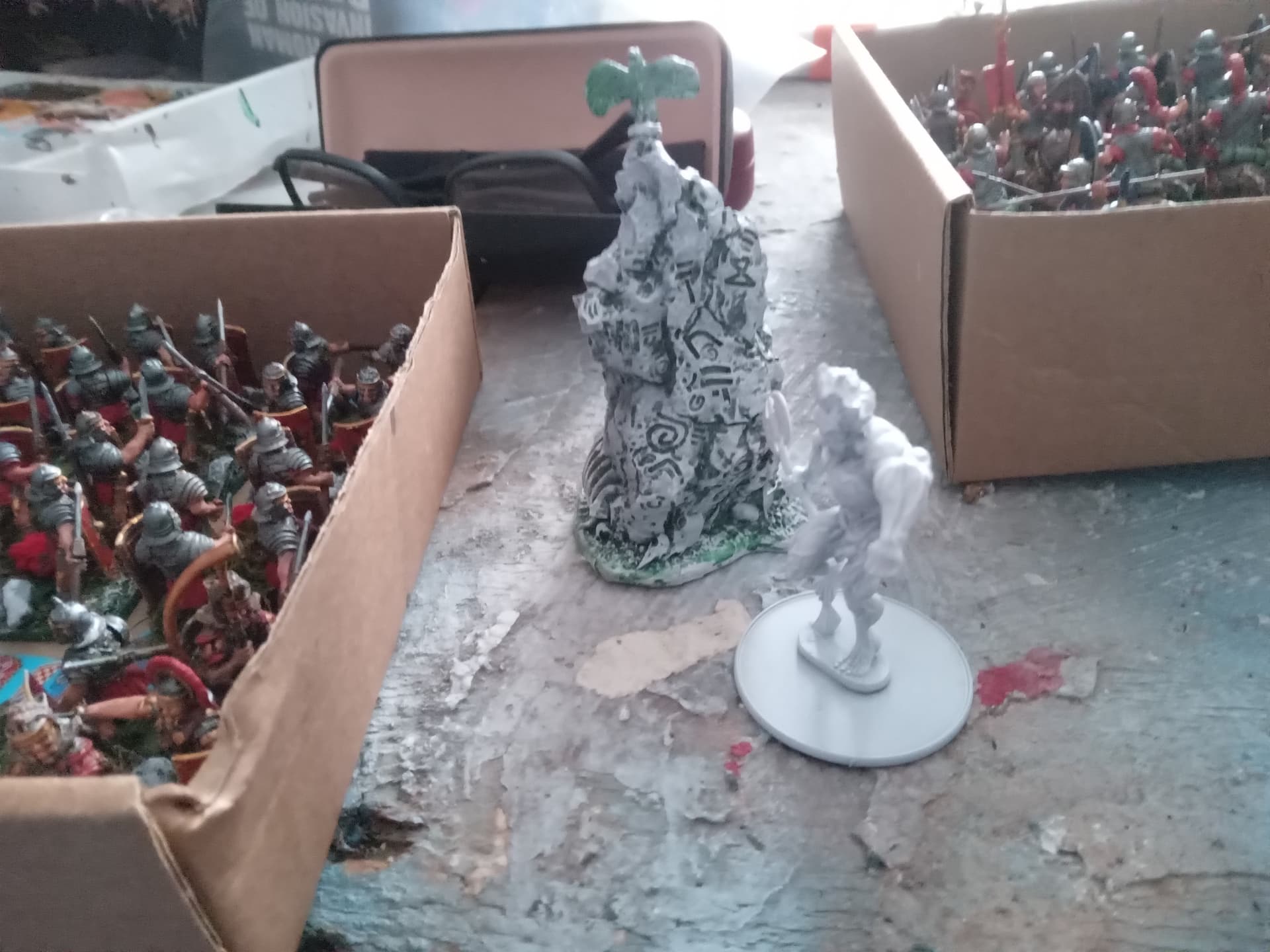 The clock is ticking to finish this Diorama by Friday for the Sligo Gaming Day this Saturday, and the painting competition. Initially, I was planning on a Roman/Celt diarama, but then we went to Galway, and I bought these in Dungeons & Donuts. The miniatures are for a game Slaíne: Kiss My Axe, but they were crying out to get painted, but first i had to finish my Romans. A few days frantic painting , (and repainting ) has got me close to completion, so I figured I’d better get a start on the base. I can finish the models in situ