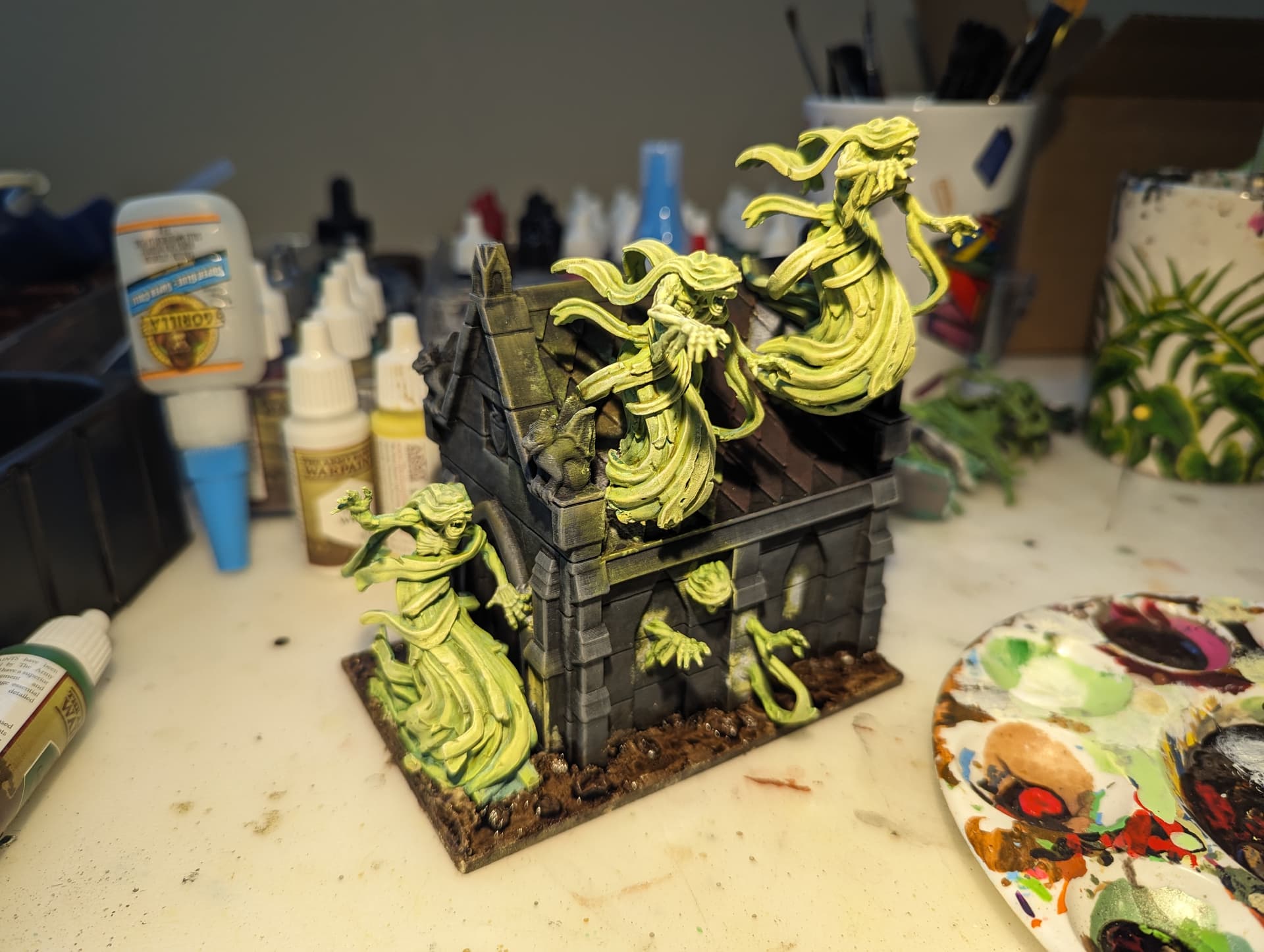 The bases in the pictures are just for flavour pics and are from my Warlock tiles set. The actual bases will be muddy fields, graveyard, and cobblestone streets.