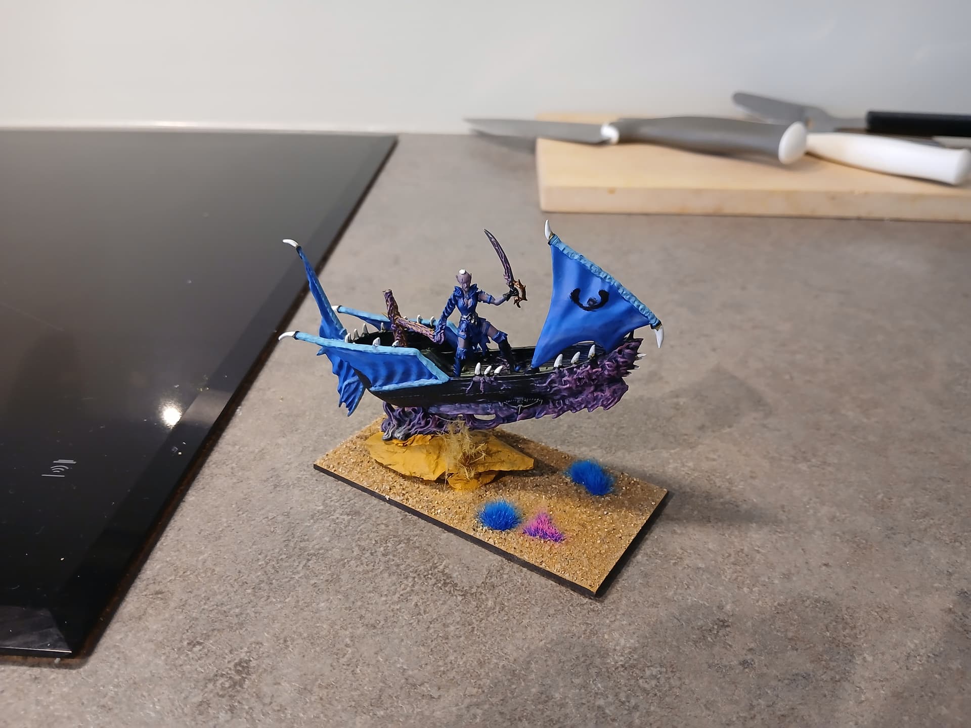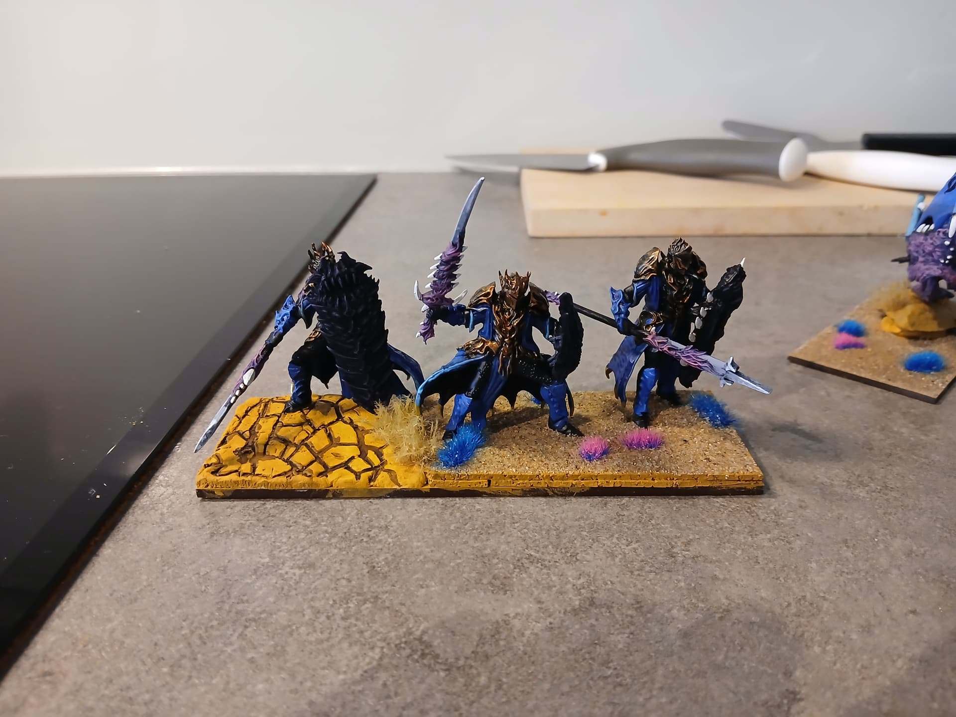 It is first time using only one colour, but of different shades for most of the unit except weaponts/details. I like the result and I think I’ve caught most of the colours of twilight. I also wanted to make a heavy Abyssal theme, and have omitted all Nightstalker options as I find it reasonable that one crone can only tap into one realm.