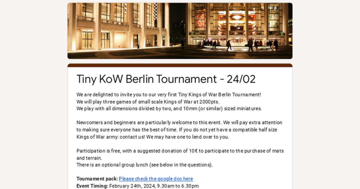 We are delighted to invite you to our very first Tiny Kings of War Berlin Tournament!