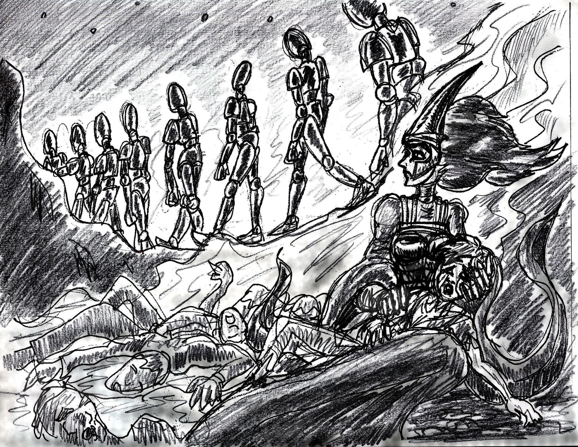 Basically, Antonia gets chased to the barren lands of ice and snow, having lost a battle to the great warlord King Arndras. Andras is on a personal kick to kill her himself,. With only a handful of apprentices, Antonia cannot find any graveyards or battlefields to raise an army. So she coaxes her apprentices to swear terrible oaths and then skins them to make her leather dress. When Andras catches up to Antonia, he is in for a shocking surprise as Antonia invokes the pledges of her dead apprentices and summons them as a troop of Wraiths…. anyways, if anyone is interested at all, please let me know and I’ll fire up my Chat GPT and get to work.