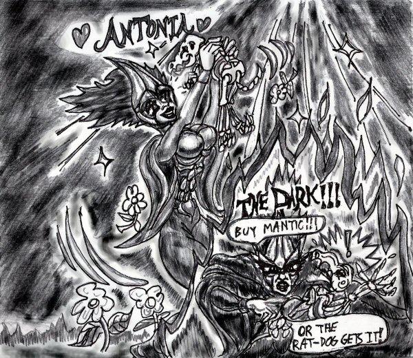 Good evening! I go by Hagetaka Kuro in Mantica but some of you will remember me as Gerry Lee on the former message boards. I’m a creative type but don’t do anything particularly well. Anyways, I was thinking of rewriting a “Fantonia” (fan stuff about Antonia the Dark) fan fiction story I lost long ago. Here is a drawing I did of the story and my photo of my model of Antonia.